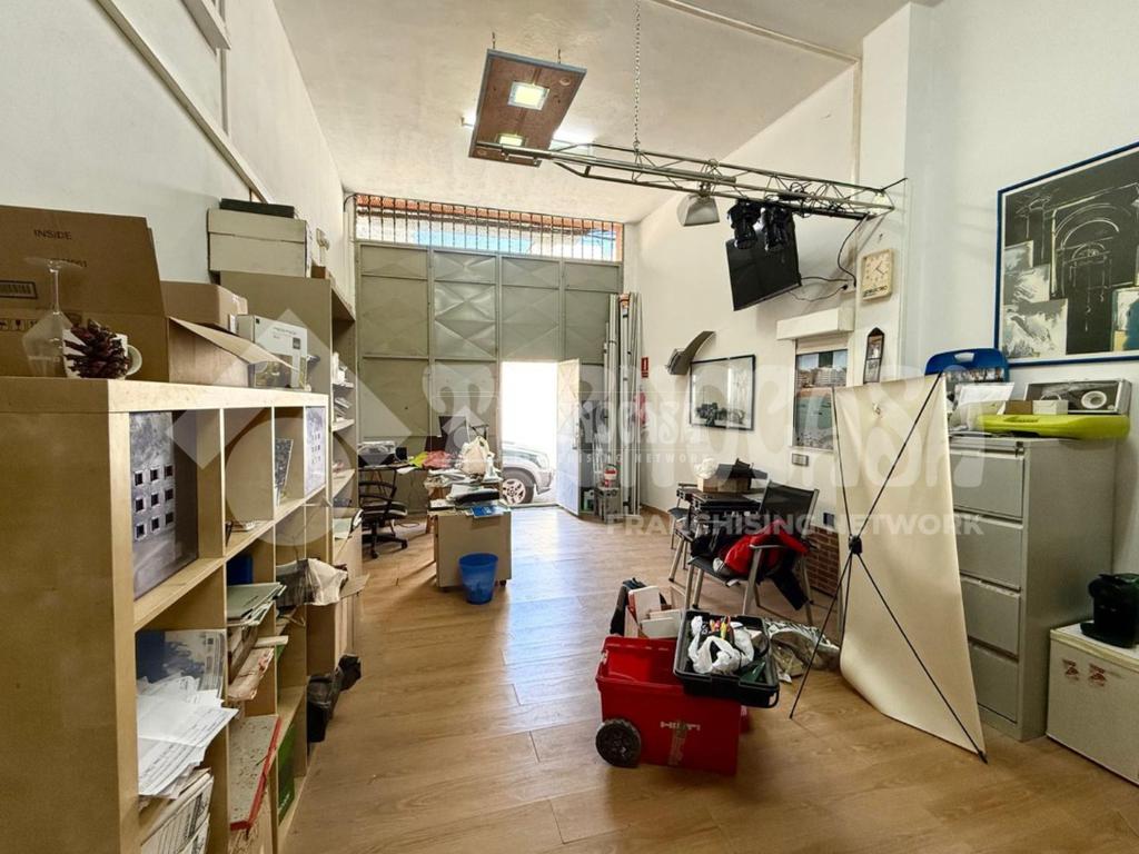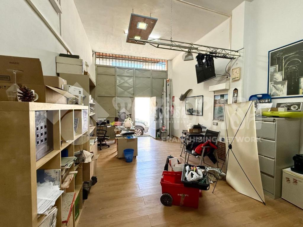 El espacio se distribuye de manera práctica y versátil: la mitad del suelo está revestida con tarima, aportando calidez y una imagen cuidada, mientras que la otra mitad en cemento ofrece resistencia y facilidad de adaptación a distintos tipos de uso.